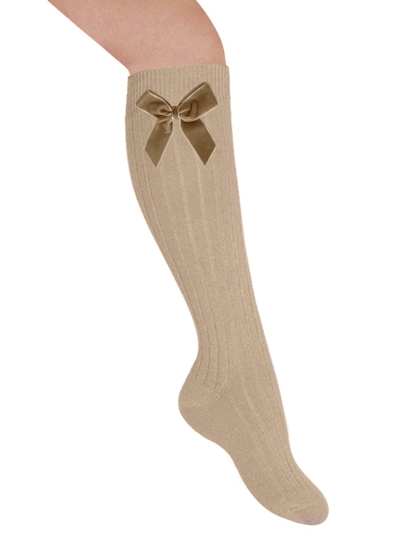Calcetines altos canalé con lazo de terciopelo largo Nuez Nut